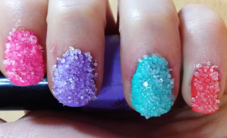 Zahărul aplicat pe unghii este una dintre cele mai recente metode cu care se poate obține o manichiură spectaculoasă cu care orice domnișoară se poate mândri. Este o tehnică ușor de făcut și acasă, nu doar în saloanele de manichiură, mai ales că nu necesită lampă pentru uscare, pentru că se face cu ojă normală sau gel de unghii care se usucă fără.